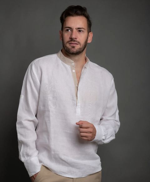 Lightweight and breathable men's shirt made from natural fibers.